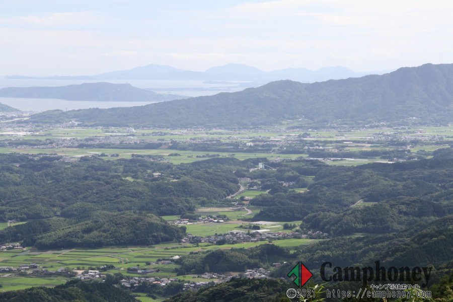隣接する羽金山の中腹500mの地で、遠く能古、志賀島や玄海灘を望むことが出来ます。夜景もすばらしく、漁火の点滅と電照栽培の眺望は心をなごませます。晴天の夜には満天の星が近くにきらめいており、大自然の中の一人を実感させるでしょう。四季の移ろいも、小鳥や草花と共にあり風雨雷電に山々の姿は相応し、千変萬化に富みます。近くには、名勝白糸の滝があり、子供の水遊びなどが出来ます。