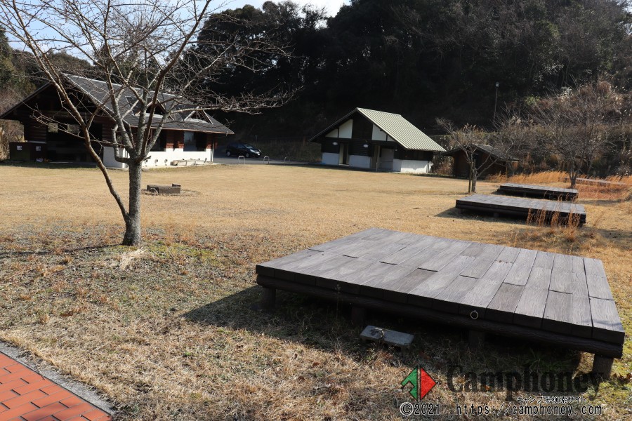 【設備】トイレ(男子:小便器3・手洗い・水洗和式1、女子:個室3・手洗い、車椅子対応トイレ:水洗洋式1)、屋根付き炊事棟(流し台・カマド・テーブル・椅子)、ファイヤーサークル