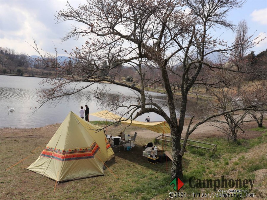 ・ 湖周道路の通行はテント設営可能エリアのみです。