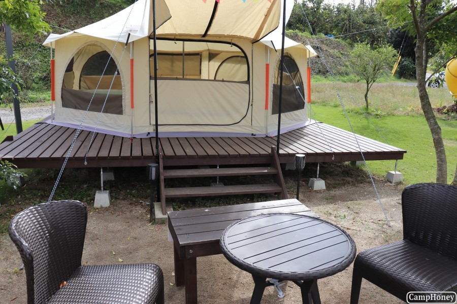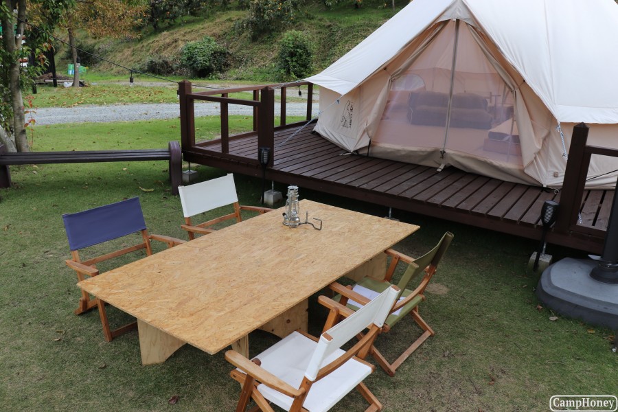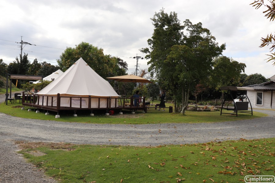 十割蕎麦と地元食材を味わえる古民家レストラン&カフェの敷地内にグランピング施設があります。持ち込みテントも可能。