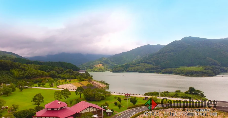 班蛇口湖(竜門ダム)の側にある広場で宿泊キャンプまたはデイキャンプが利用できます。