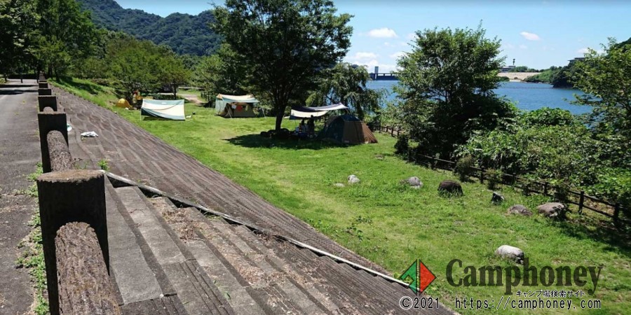 ダムの真横でキャンプが楽しめる予約不要の無料キャンプ場です。(菊池市役所に利用申請は必要)無料なのにトイレも綺麗に管理されていて、景色も綺麗だと特にソロキャンパーやグルキャンに人気スポットとなっています。