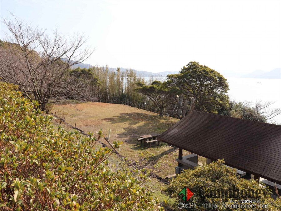 夕日以外も一面に海&島々が広がる絶景キャンプ場です。徒歩圏内に砂浜の海水浴場もあります。