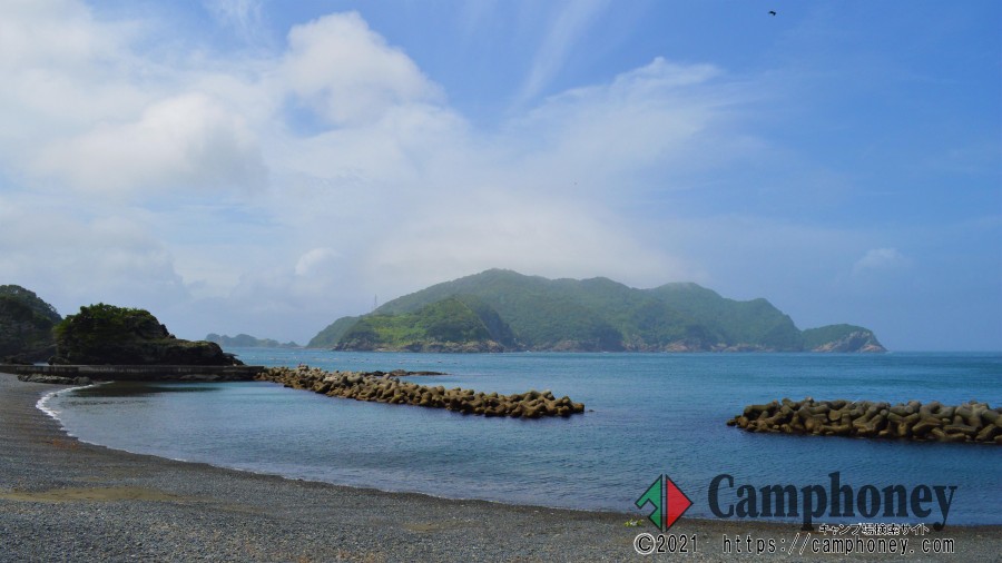 キャンプ場は鶴見半島の先端、九州最東端の海水浴場である下梶寄海水浴場にあります。