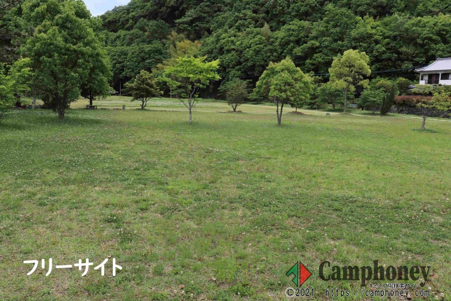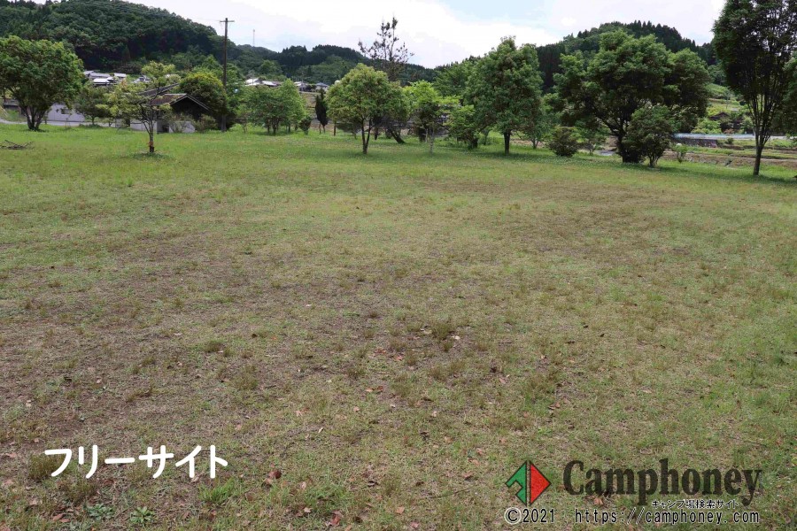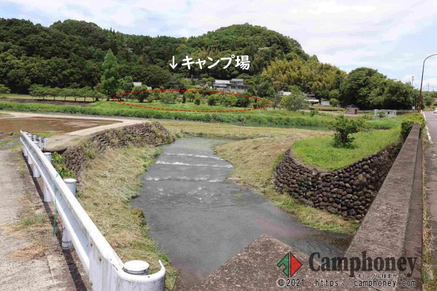 橋の向こう側から見たキャンプ場