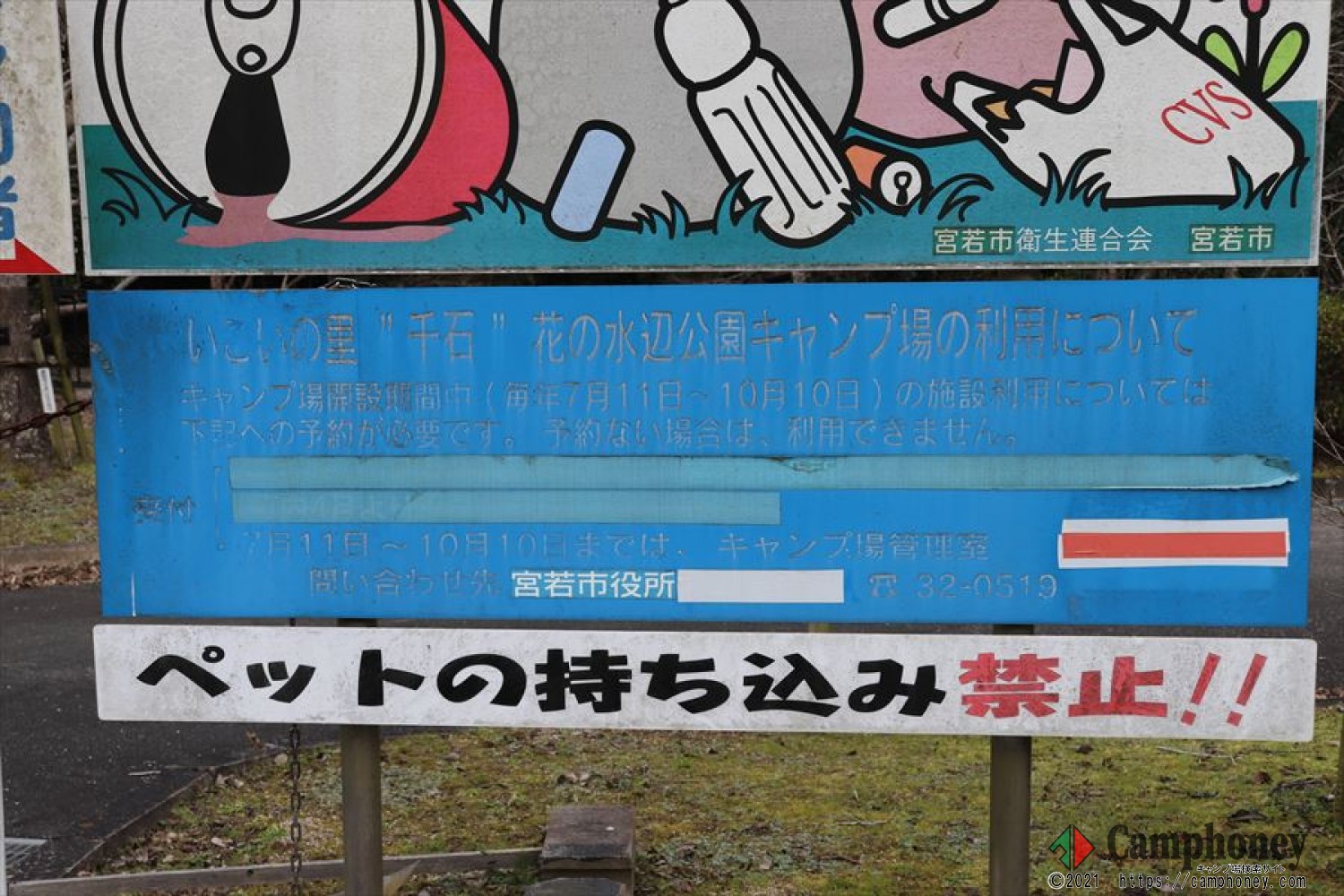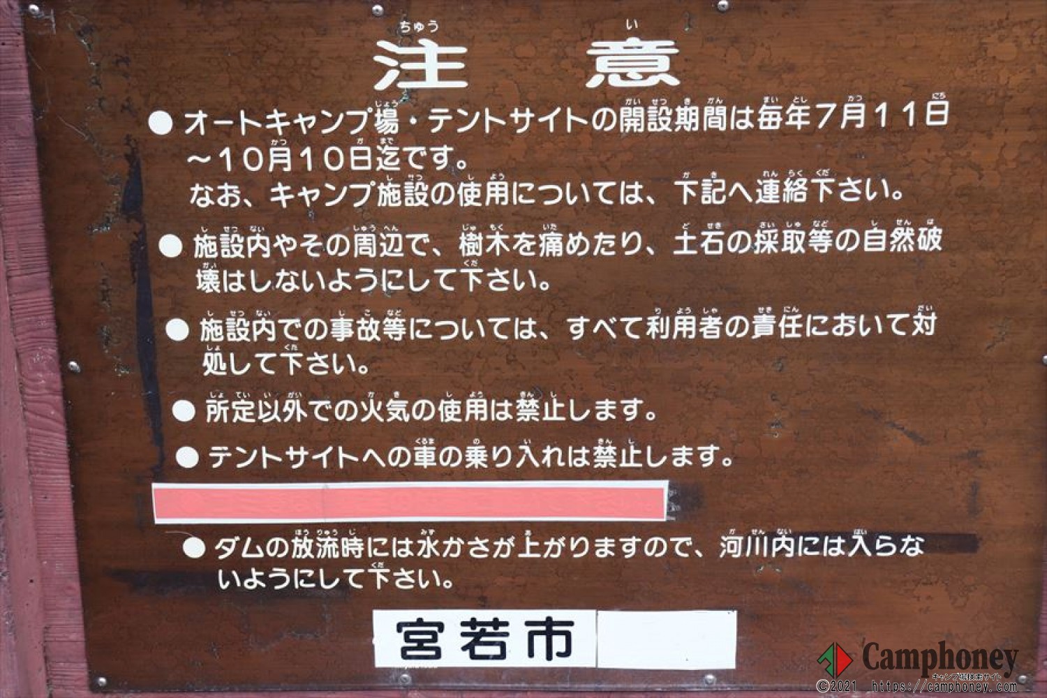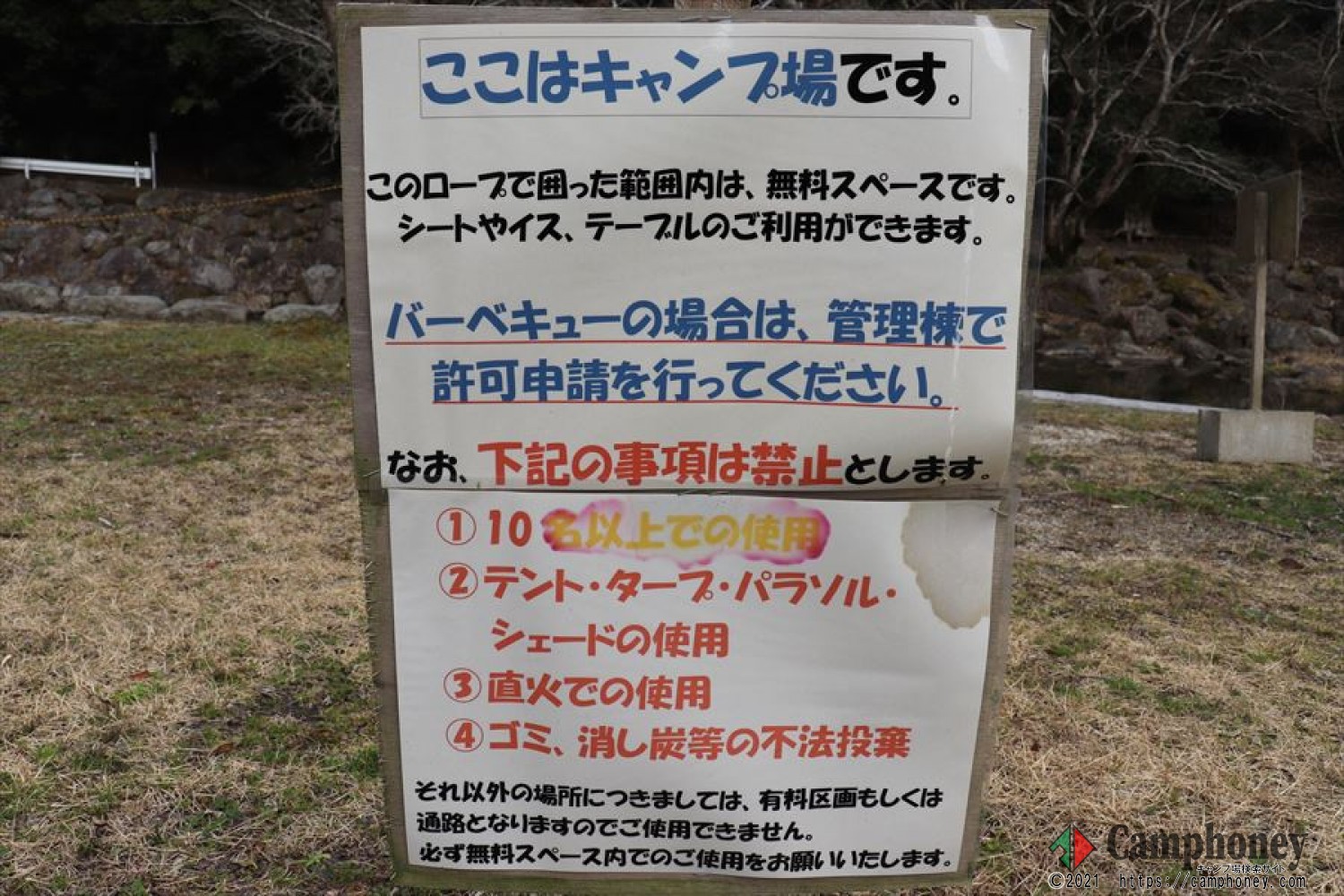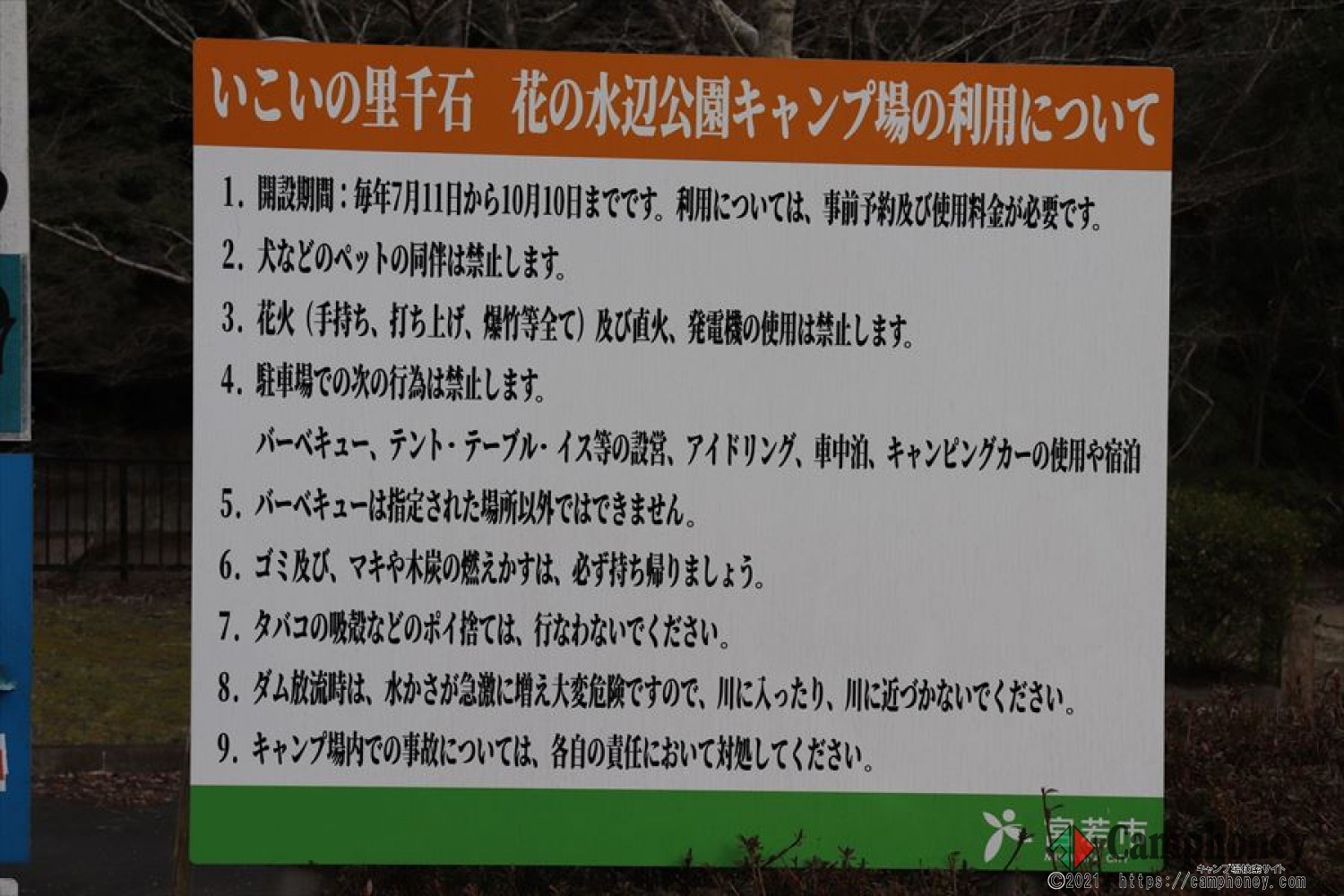 キャンプ場利用についての場内看板