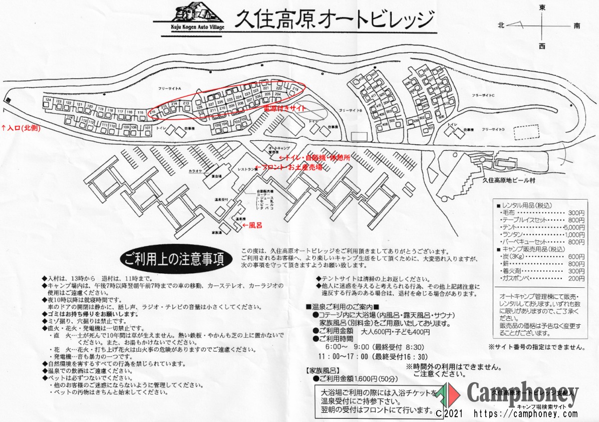 コテージ、オートビレッジ、風呂のご案内、ドライブマップ、料金表など