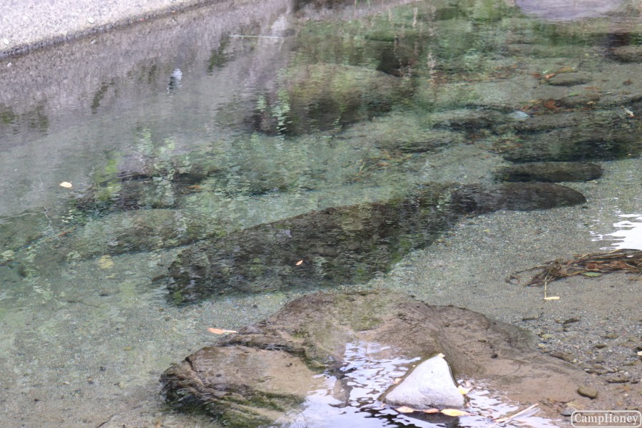 すぐ横には綺麗な川もあり、さすがホタルがいそうなくらいの透明度で綺麗です。敷地内に鯉もいました。ここの鯉の1匹に金色に輝く鯉がいて、これは見物です!