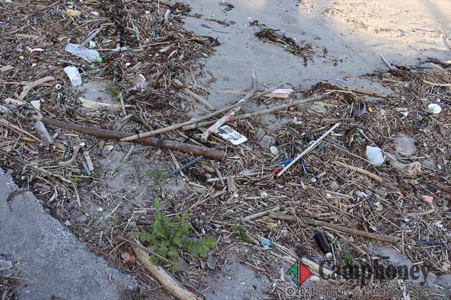 砂浜に打ち上げられたゴミたち
