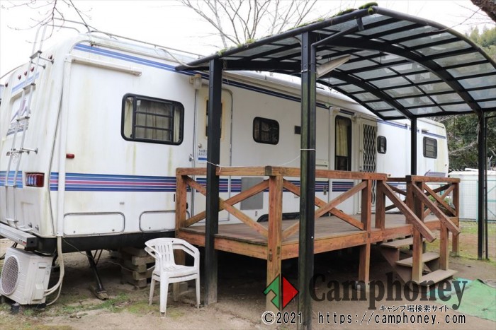 案内文 冷暖房完備、ミニキッチン(IHコンロ)、食器類、シャワー、冷蔵庫、トイレ、寝具の付いたトレーラーハウスで宿泊できるプランです。