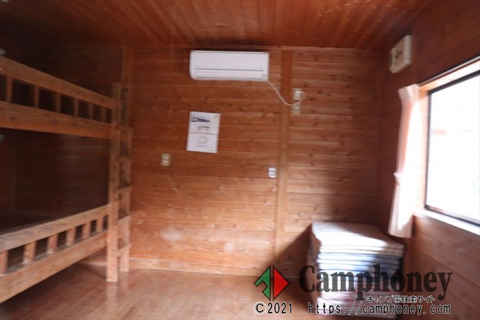 冷暖房は全棟完備。5人用のみトイレ、シャワー付き。2段ベット、ロフト、流し台の有無が棟によって異なります。