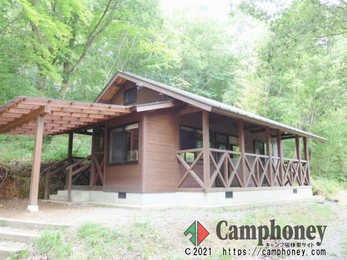 案内文 山小屋風の建物で照明と電源だけのシンプルな施設。