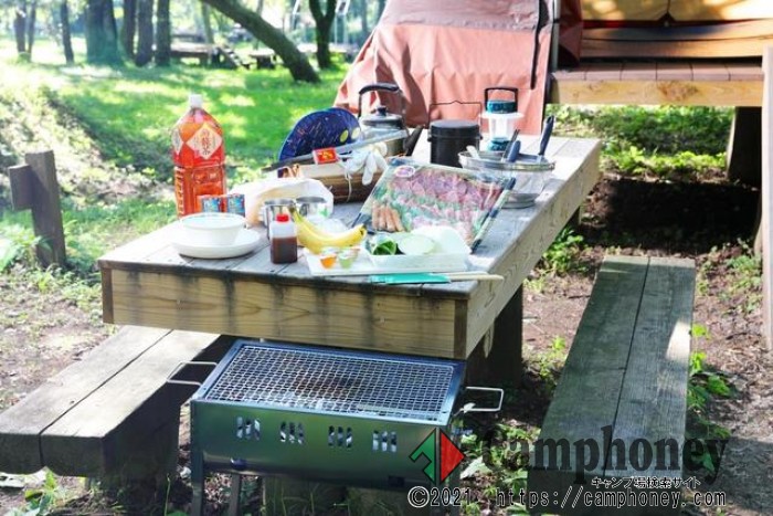 夕食にはキャンプの定番「バーベキューコース」をご用意いたします。 |