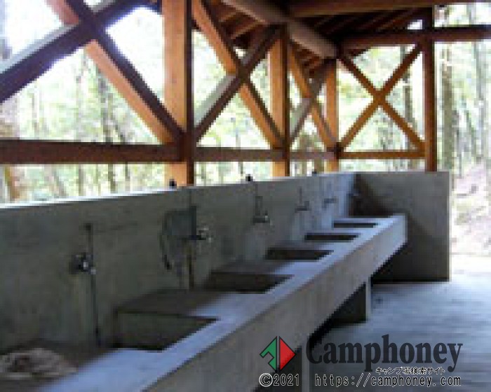 炊事棟には、流し、かまど、テーブルが設置されています。