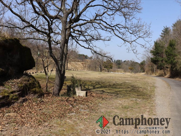 地面はキャンプ向けの芝生 ※3月撮影の為にまだ枯れています