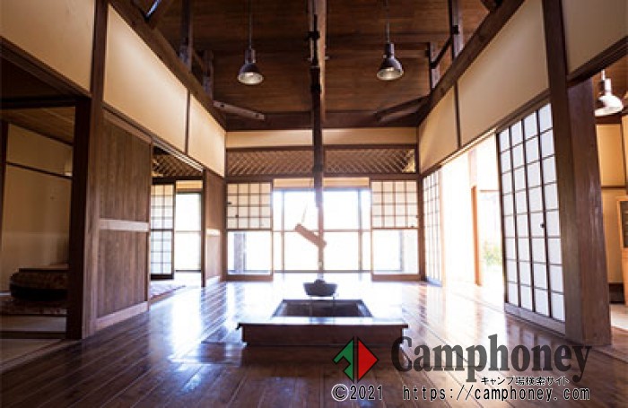 土間の台所から一段上がった居住スペースはほとんどがバリアフリーになっているので、おじいちゃんおばあちゃんからお孫さんまで三世代キャンプにも喜ばれます。