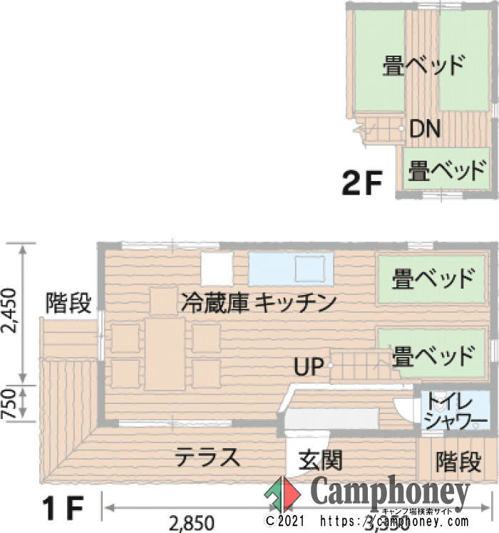 ・テントスペース(ファミリーテント+タープ または リビング一体型テント設営可)
