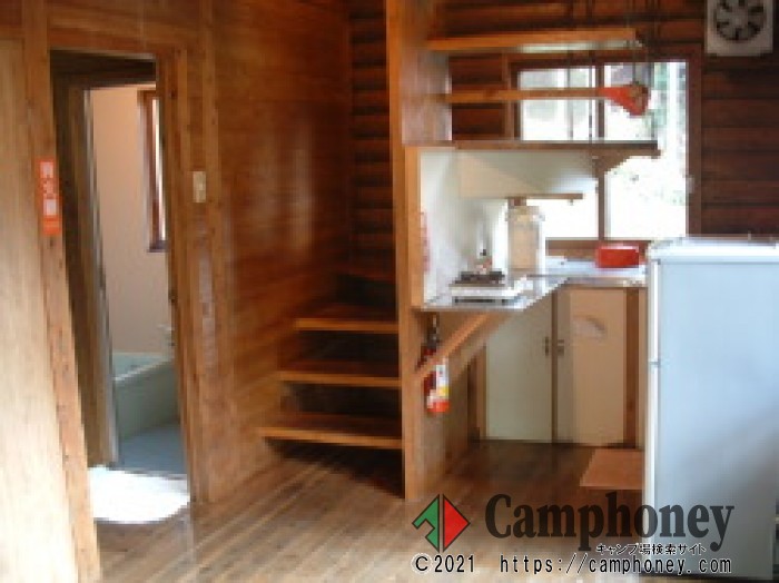 丸ログのAタイプが1棟、角ログのBタイプが2棟あります。新ログ全棟に、炊事用具が揃っております。