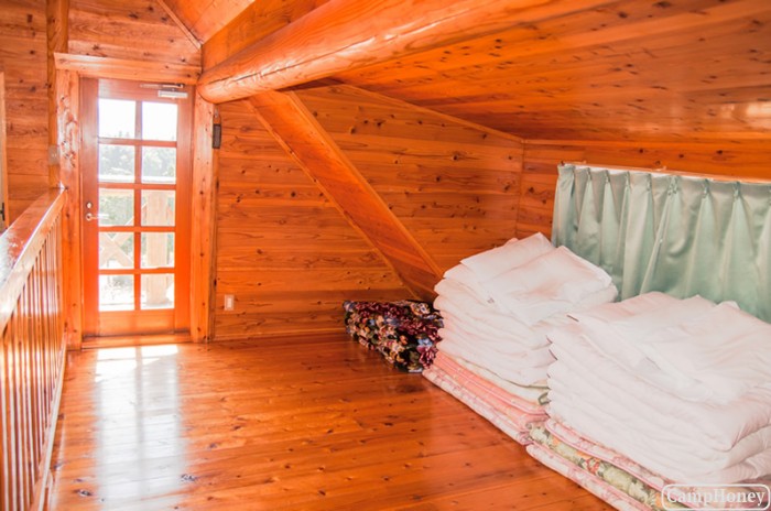 森の中に点在するケビンは8名分のベッドと広々としたリビングがグループ旅行に最適です。お部屋の前でバーベキューもOK!
