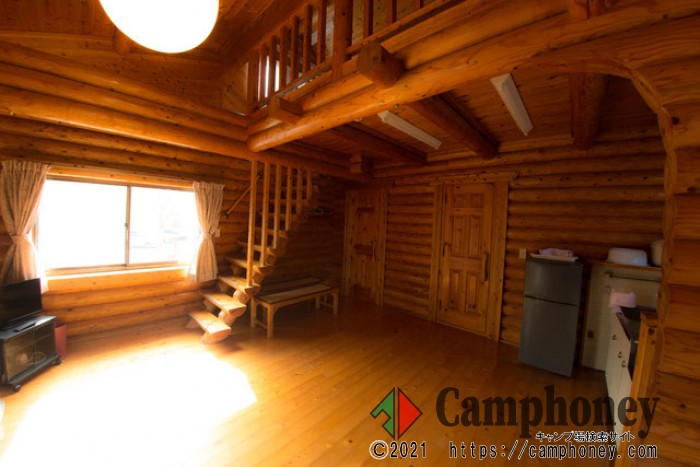 山小屋風のログハウスは全部で8棟で、いずれも2階建てのロフト付きです。シャワーやトイレ、テレビに冷蔵庫はもちろん、冷暖房や台所設備、包丁や食器などの各種調理用具まで完備しています。各棟の庭に専用のバーベキュー設備があり、ゆったりとお過ごしいただけます。