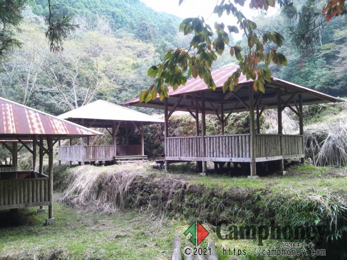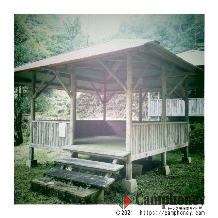 屋根付きの小屋がありそこにテントを設営できます。トイレなど他の設備はなしと考えて下さい。